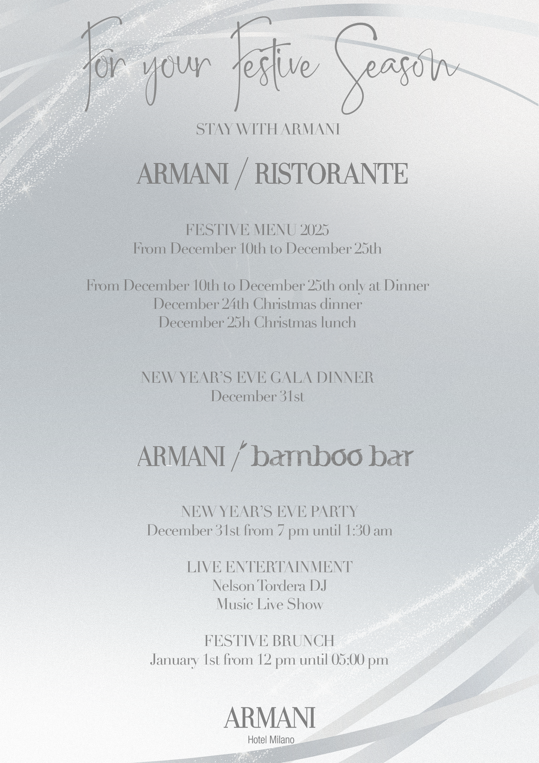 Join us for our January 1st brunch to welcome the New Year together with Armani Hotel Milano.